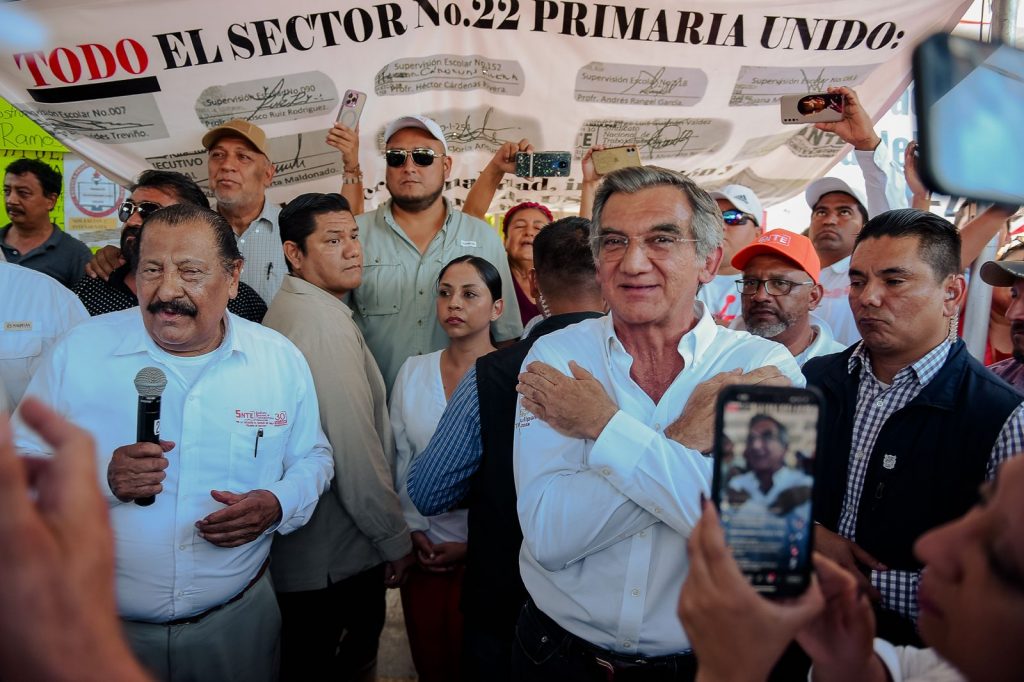Durante el encuentro, el dirigente de la Sección 30 del SNTE, Arnulfo Rodríguez, hizo un reconocimiento al gobernador por acudir personalmente y dirigirse a las y los maestros y lo consideró su «amigo».