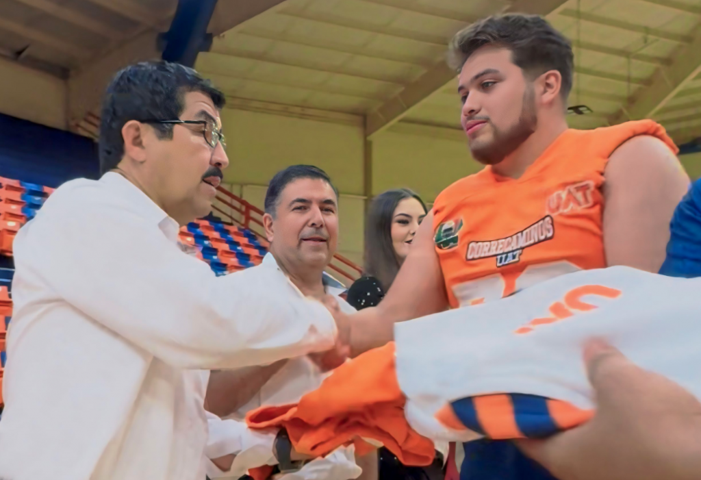 Destacó que este año serán nueve equipos los que compitan en la liga de futbol americano de la ONEFA, por lo que exhortó a los jugadores de Correcaminos Liga Mayor a dar todo su esfuerzo para poner muy en alto, dentro y fuera de la cancha, el nombre de la máxima casa de estudios de Tamaulipas.
