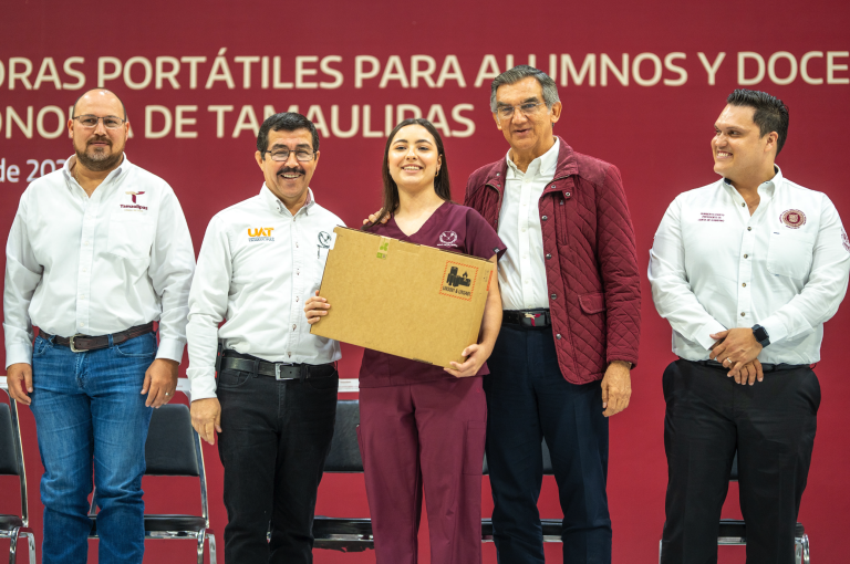 Gobernador y rector hacen entrega histórica de equipos de cómputo a estudiantes y docentes de la UAT